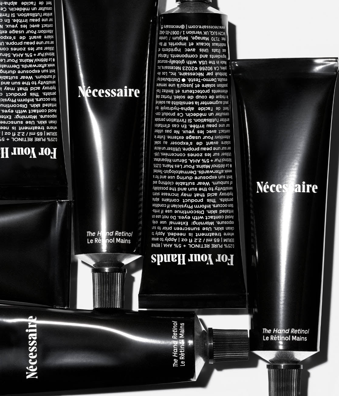 Due to the high % of Retinol this formula can have a smell at first application. The Hand Retinol contains Rosewater to improve the scent. Nécessaire adheres to EU Regulation and provides EU-compliant ingredient lists. This formula contains residual byproducts – Citronellol and Geraniol – from Rosewater. No synthetic fragrance is added.