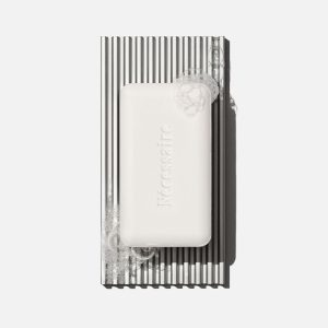 The Bars + The Soap Tray pairs two (2) in-shower bar treatments with a 100% Premium-Grade Aluminum tray. The Body Cleanse Bar is a rich. non-stripping. non-drying bar cleanse for skin. Avena Sativa. Amino Acids and Hyaluronic Acid combine with a high concentration of glycerin and gentle plant surfactants to provide a comforting cleanse. Made without Soap. SLS/SLES. Silicones. Phthalates. Parabens and PEGs. Fine fragrance notes of Moss. Bark. Bergamot and Rose for a classic experience. The Body Exfoliant Bar is a moderate-to-hard in-shower physical exfoliant for skin. 2% upcycled wood pulp (physical exfoliant) work with a high concentration of glycerin. plant oils. and plant surfactants to help treat and prevent KP. ingrown hairs. and rough. textured skin patches for softer and smoother-looking skin. The Body Exfoliant Bar is to be applied directly to skin for a textured sensorial experience. Made without SLS/SLES. Silicones. Phthalates. Parabens and PEGs. Fragrance-Free. The Soap Tray is sized to hold one (1) soap bar in a classic lay-down or two (2) soap bars side-by-side standing up. Made for re(use).